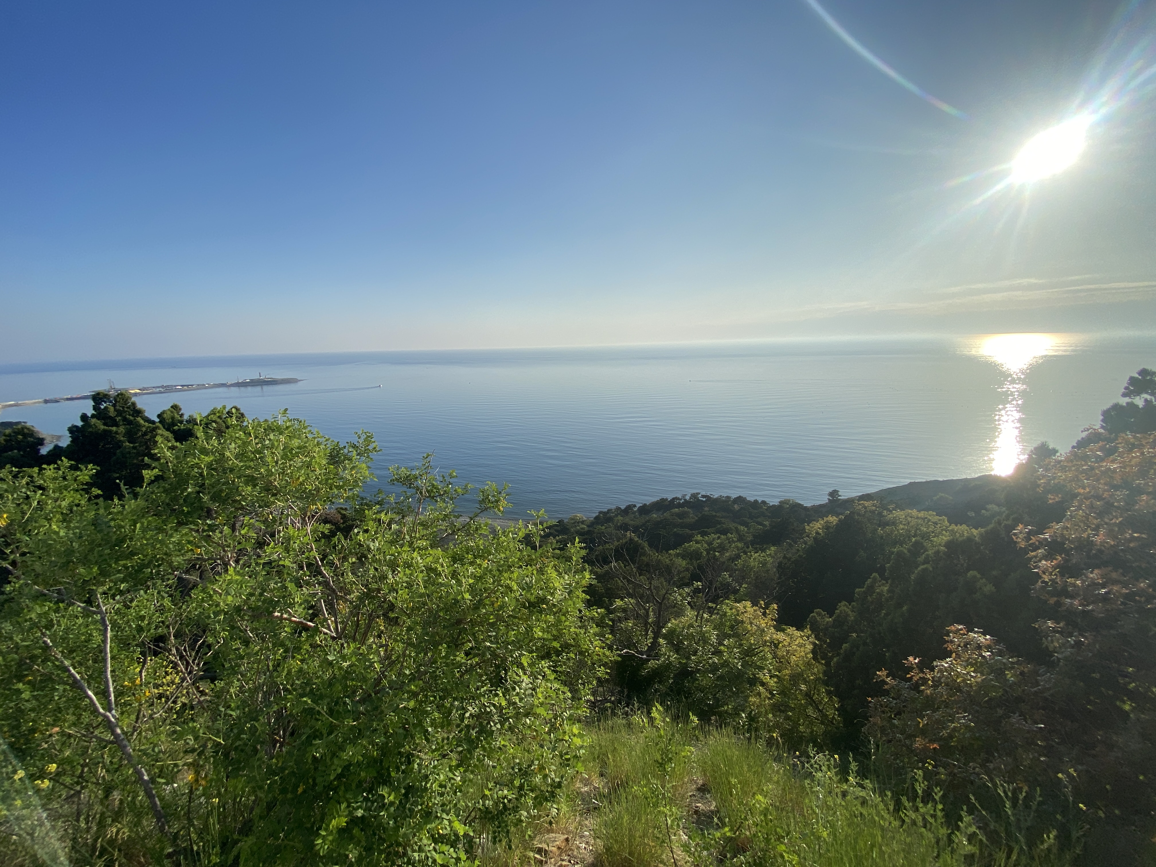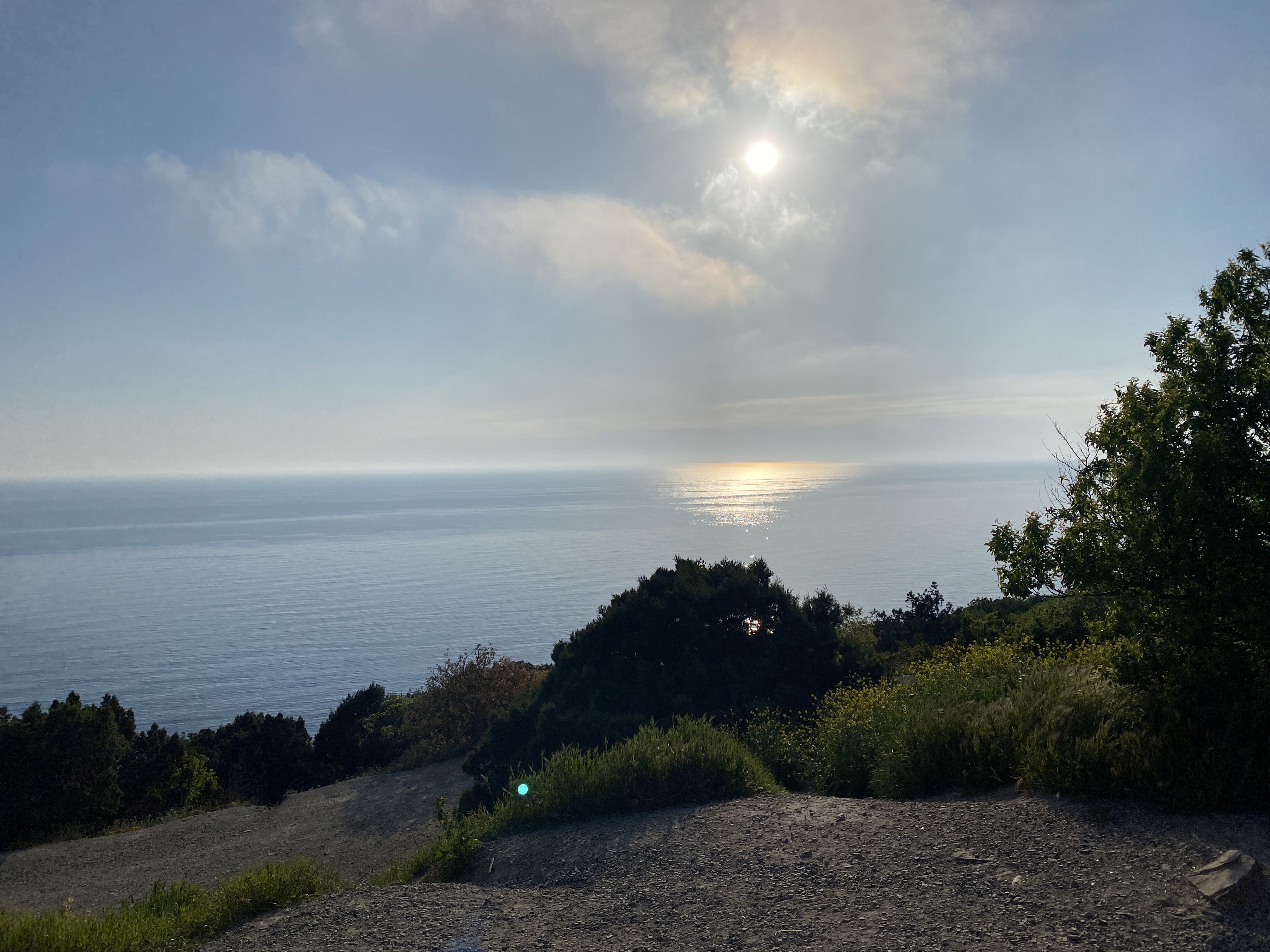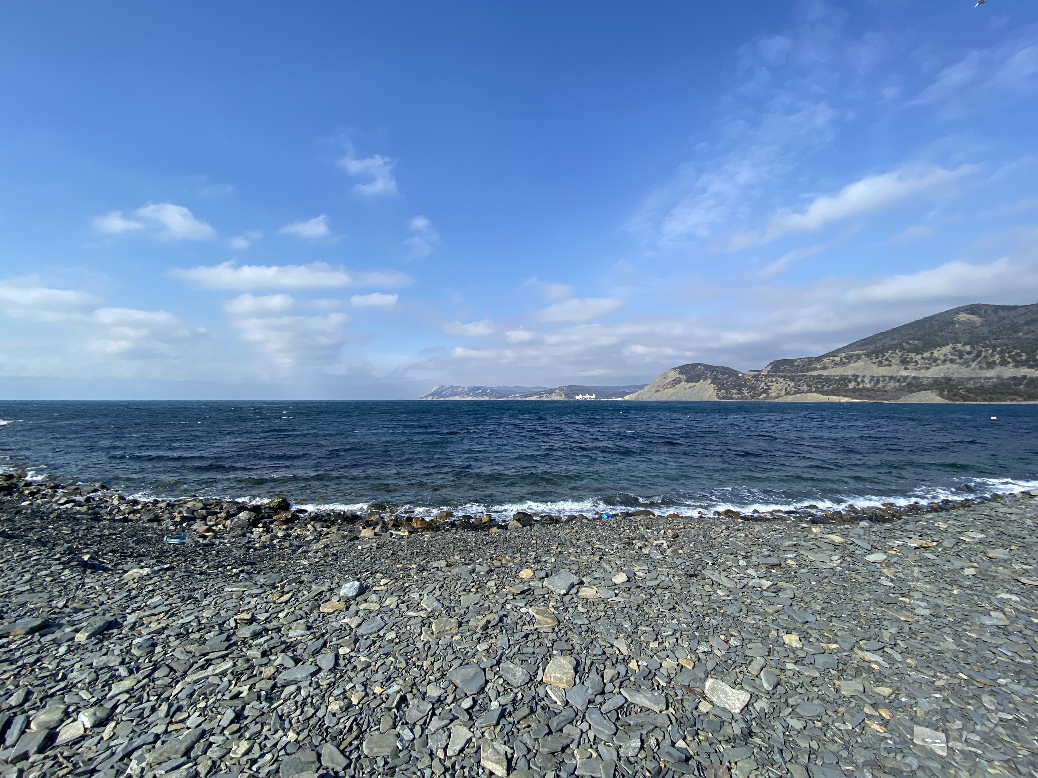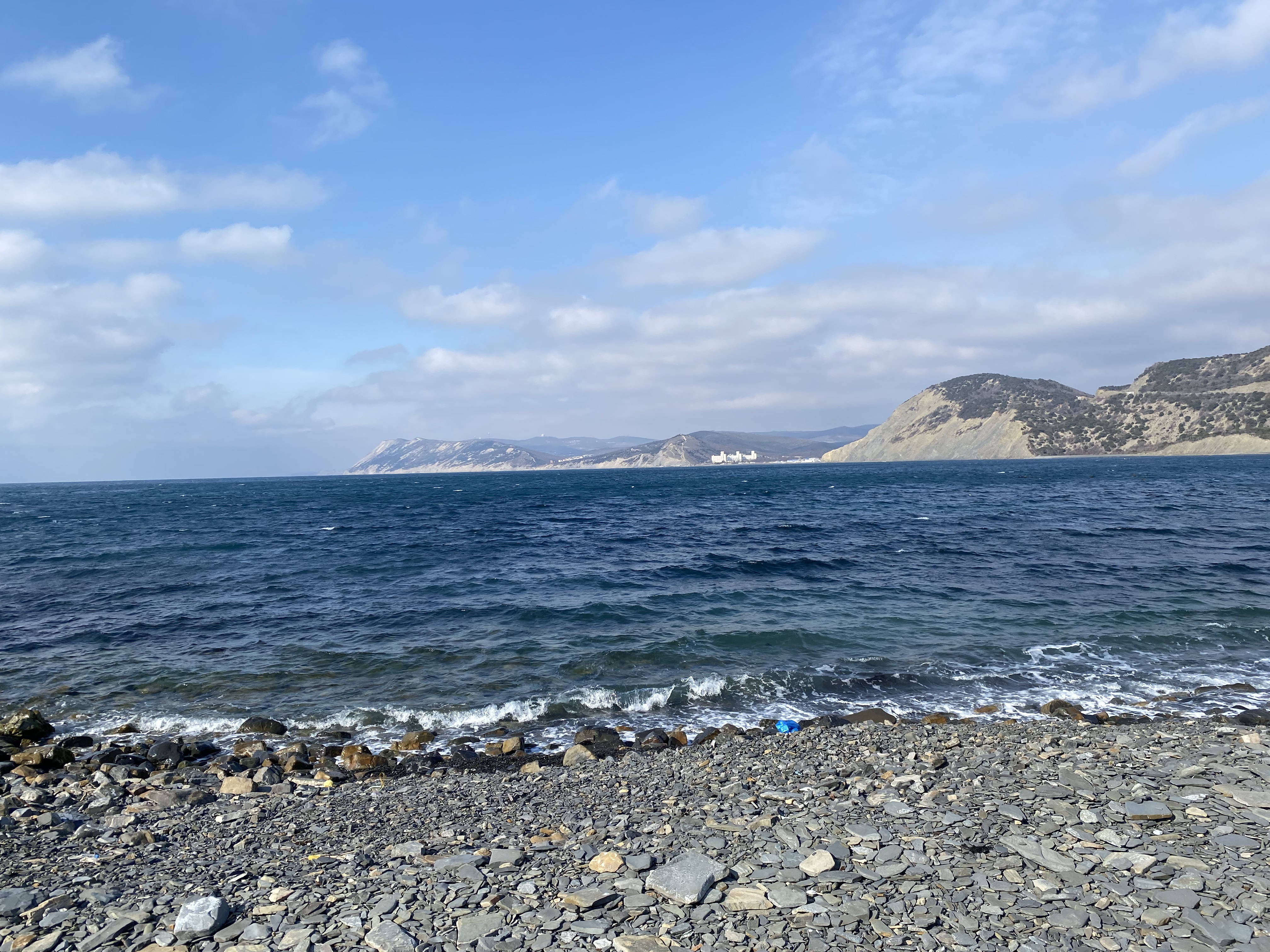 Вид с моря на горы. Можно встретить дельфинов. Еще на Утрише